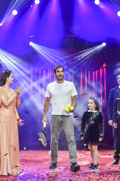 Roger Federer liess es sich nicht nehmen, die Gäste persönlich zu begrüssen : «Heute ist für mich ein ganz spezieller Tag, ein Freudentag. Nicht nur weil ich in den Zirkus Knie gehen darf, sondern weil ich diesen tollen Nachmittag mit Euch verbringen darf. 269 Kinder haben den Weg hierher gefunden, die wir mit meiner Stiftung sonst bei ihren Hobbies unterstützen dürfen. Ich finde es ganz toll, dass Ihr in Eurer Freizeit nicht nur auf dem Sofa sitzt, sondern Sport macht, ein Instrument spielt oder eine Zirkusschule besucht. Ich hoffe, Ihr bleibt noch lange motiviert und habt Freude daran.